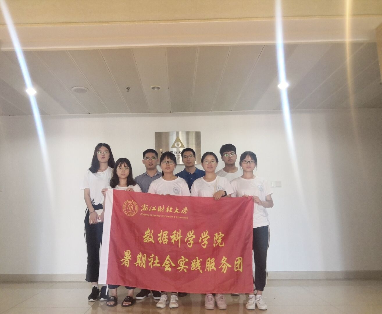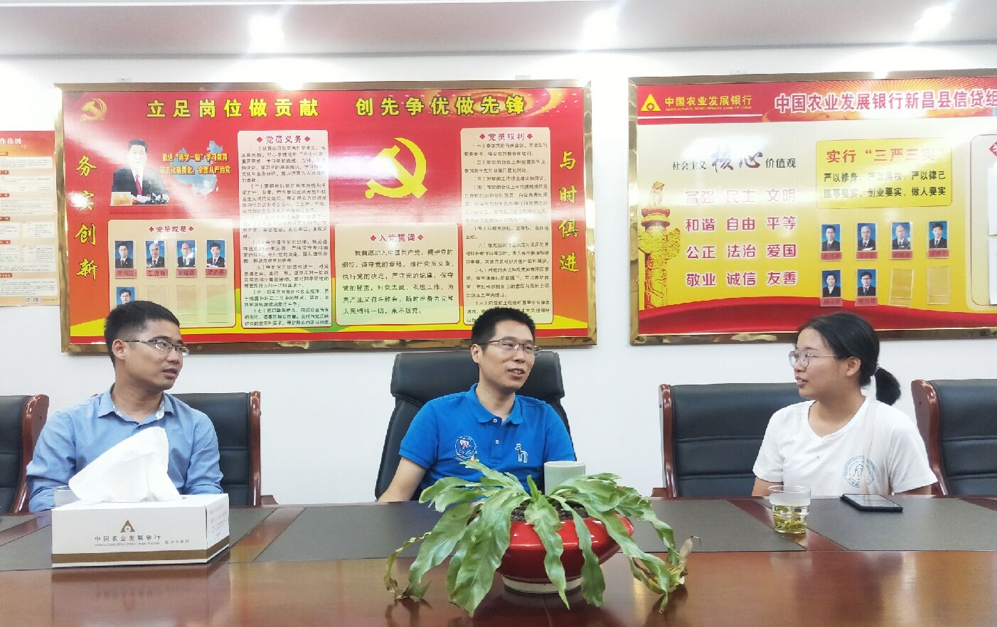 赴新昌诗路寻根实践服务团一行8人在辅导员江老师的带领下来到了中国农业发展银行新昌信贷组,拜访了08届统计班校友高伟波主任。