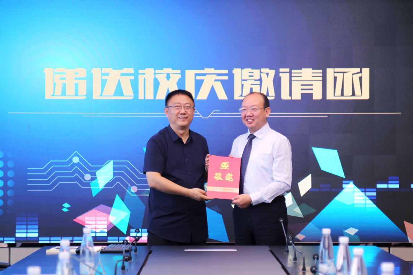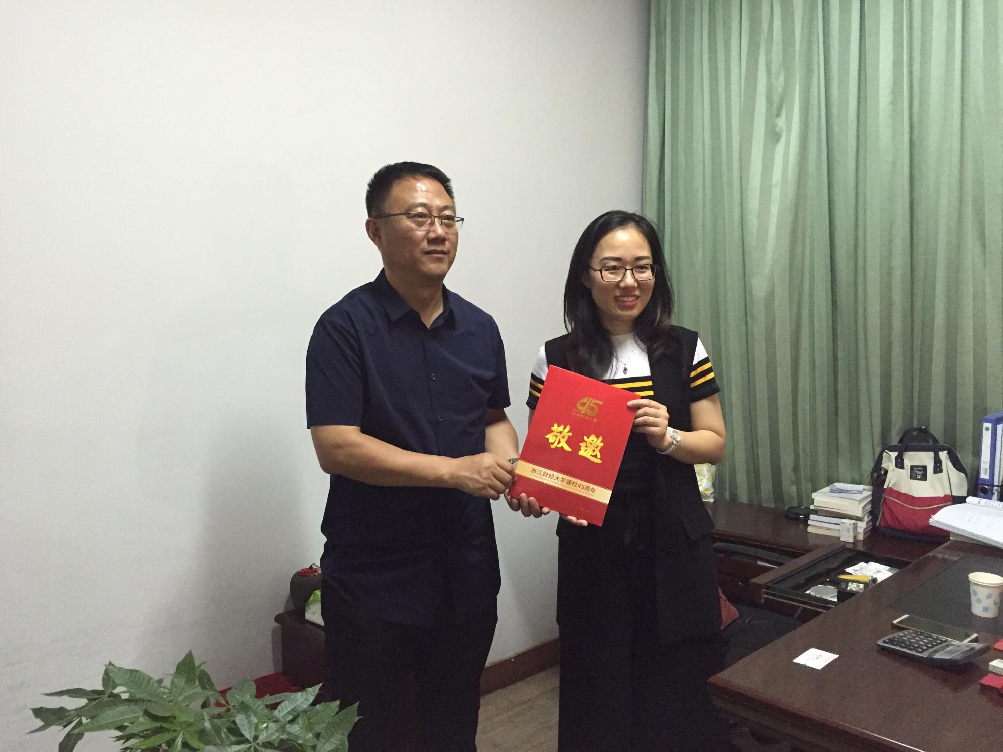 交流会最后,李占荣副校长为王练文总经理及浙财学子代表梁一鸣送上了四十五周年校庆邀请函,诚邀公司领导及全体财经学子参加学校四十五周年庆典。