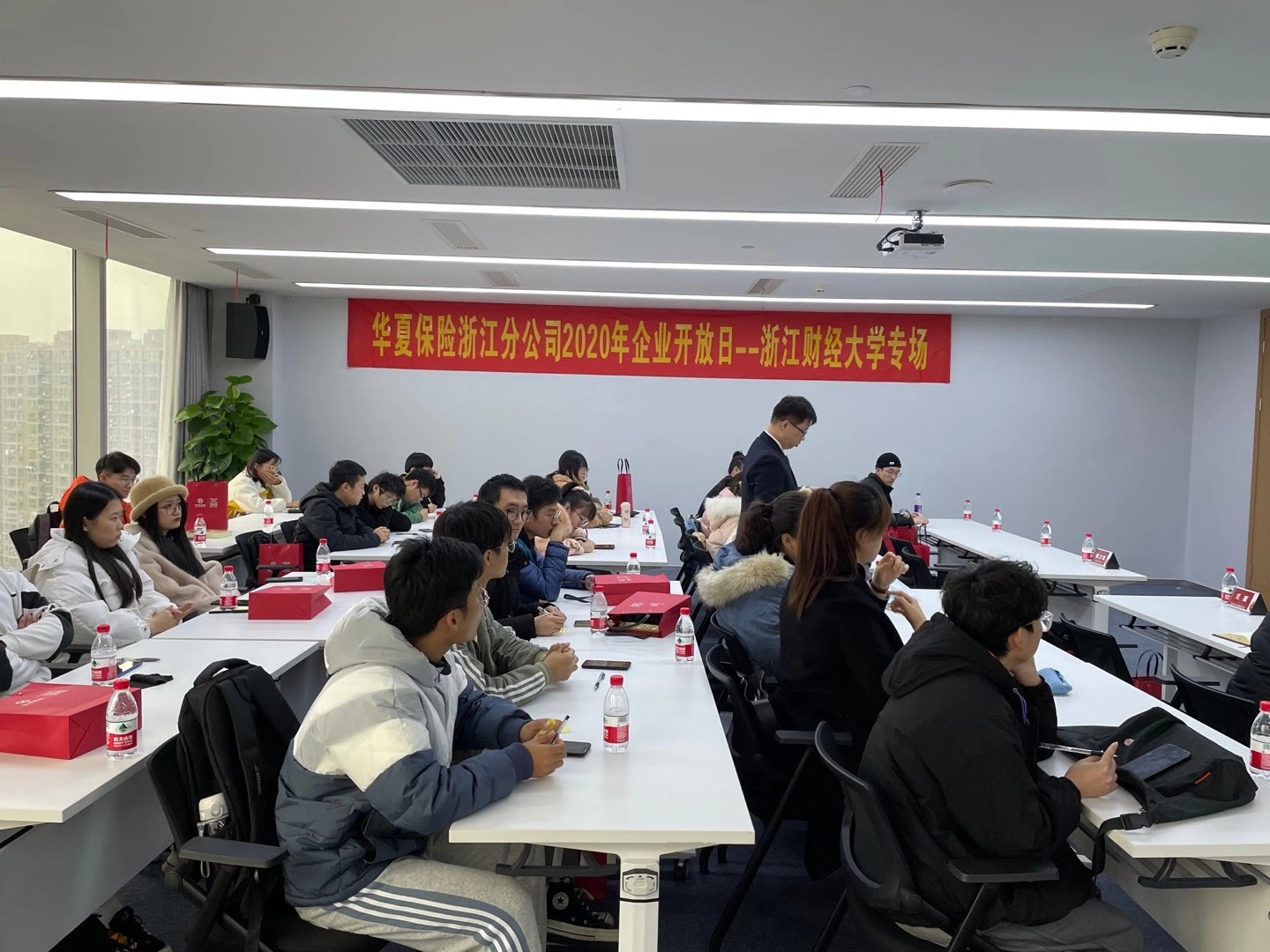 应企业邀请,在学院辅导员江挺带领下,学院32位师生走进华夏保险浙江分公司,参加华夏2020年企业开放日。本次活动通过公司行业介绍、“风华行动”管培生项目介绍、学长学姐面对面、总经理寄语等环节,进一步巩固校企合作关系,增进企业与学校之间的相互了解。