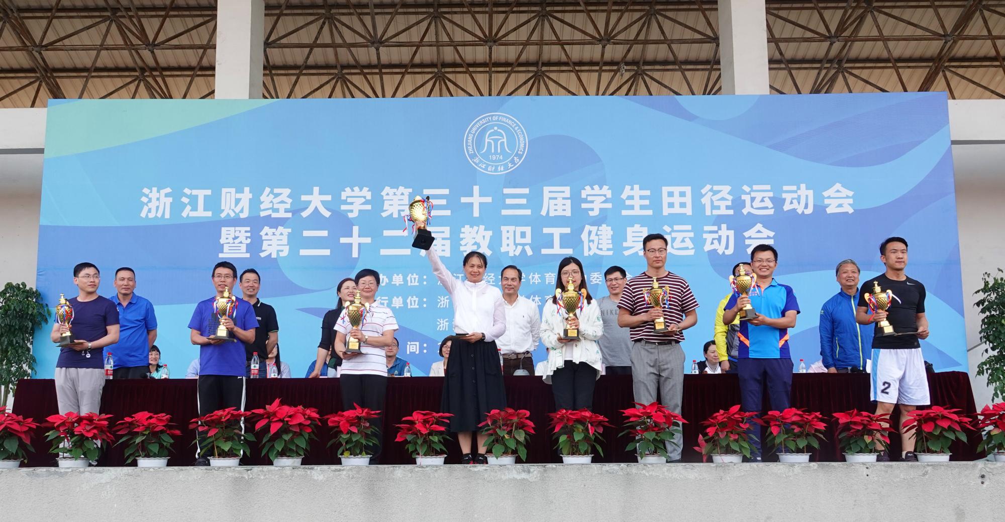 5月9日下午,学校一年一度的体育盛世-----校第二十二届教职工健身运动会如期在学校西操场举行。数科学院的老师们团结一致,奋力拼搏,呈现出了最佳的精神状态和超强的实力,经过两个半天的激烈比拚,最后以总分121分的高分荣获团体第一名。
