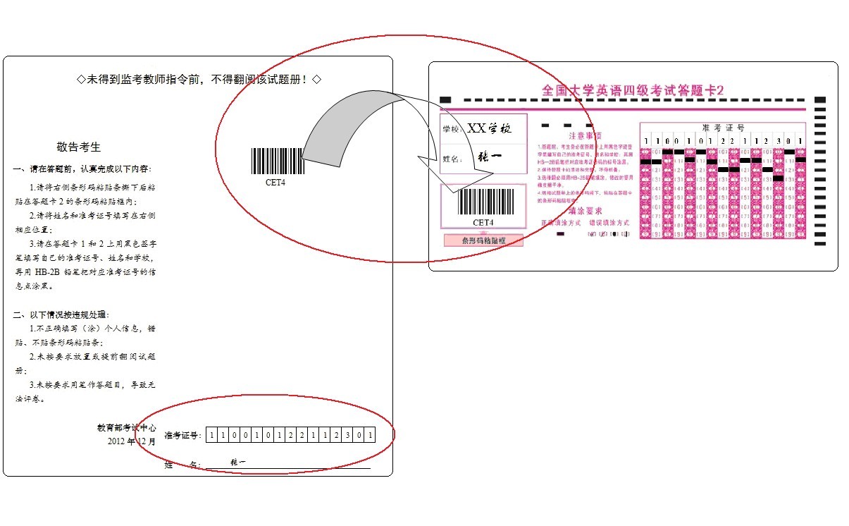采用“多题多卷”模式后,考生在正式开始作答前,除按以往要求正确填写(涂)答题卡1和答题卡2上的准考证号、姓名等信息外,还须将试题册背面的条形码粘贴条揭下后粘贴至答题卡2左上角的条形码粘贴框内,并正确填写试题册背面的准考证号和姓名。