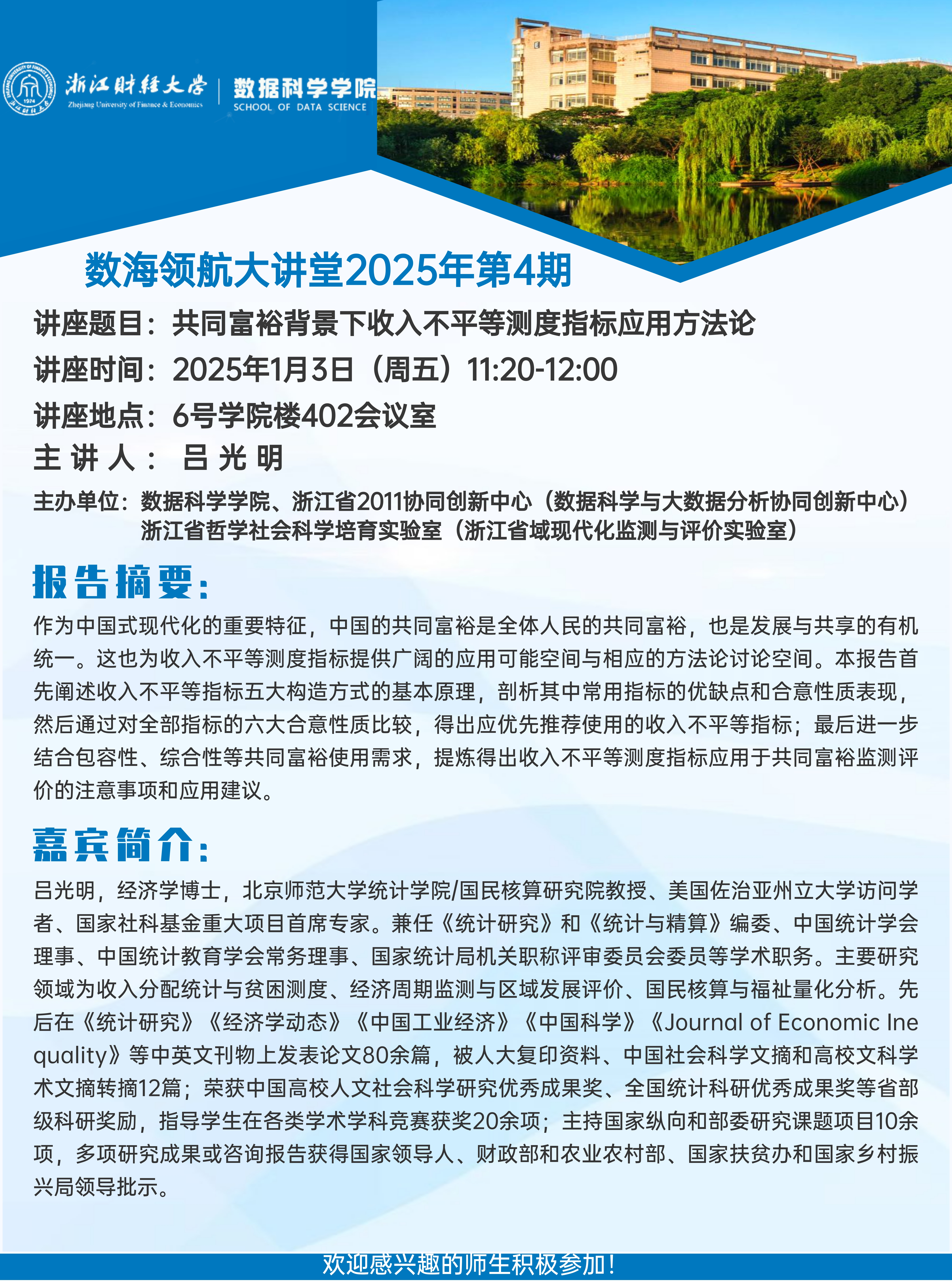 上一条:漫画柜 讲座信息——澳大利亚莫道克大学王海副教授 下一条:数海领航大讲堂2025年第3期-西南财经大学马丹教授