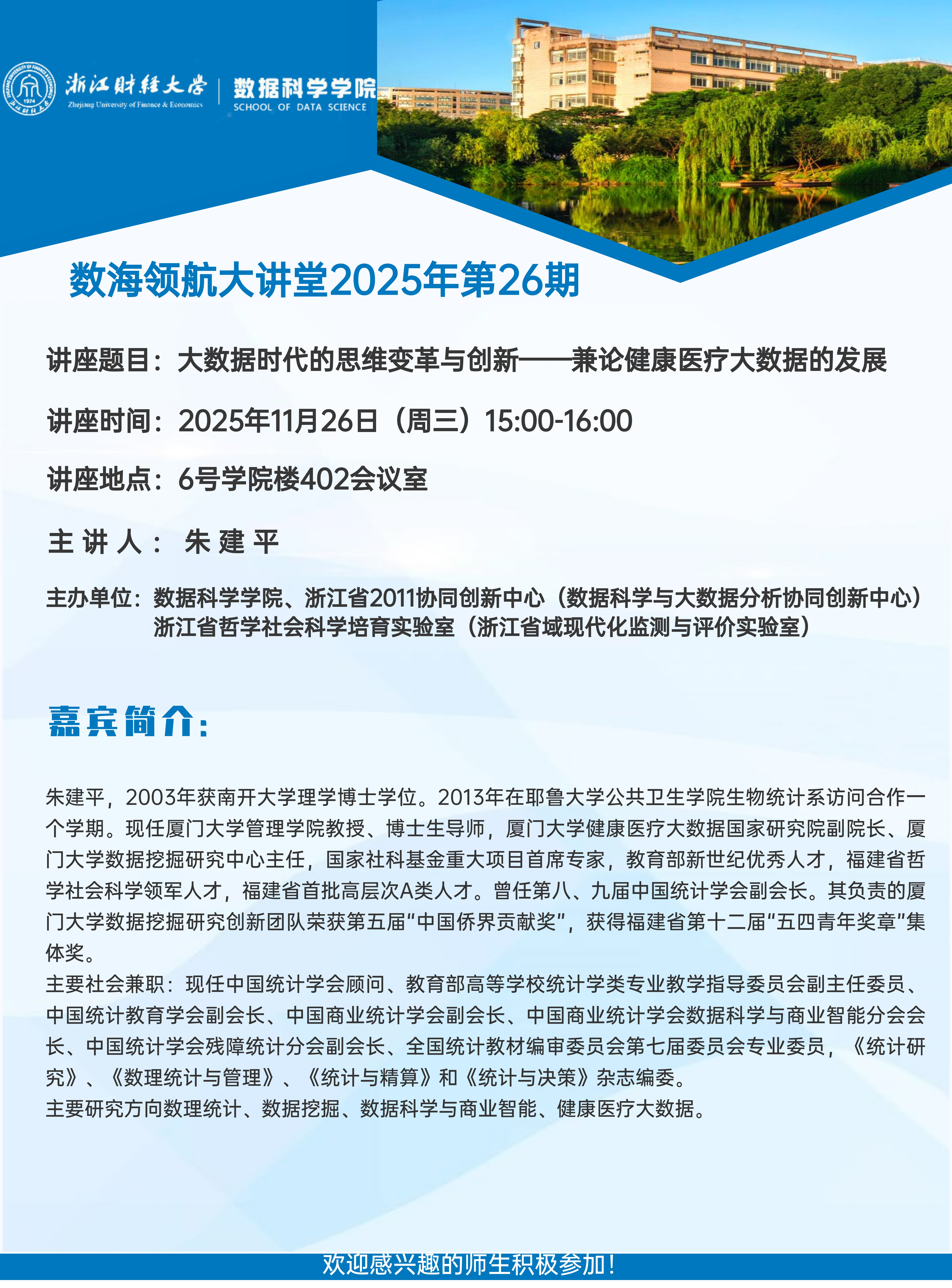 上一条:大数据时代的思维变革与创新——兼论健康医疗大数据的发展 ——数海领航大讲堂2025年第26期开讲 下一条:第三届统计学与数据科学高质量发展论坛在漫画柜 举行