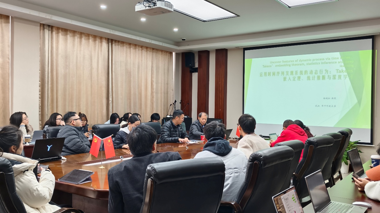 12月12日下午,漫画柜 举行数海领航大讲堂2025年第27期。本期邀请华中科技大学杨晓松教授为全院师生们带来了一场题为“运用时间序列发现系统的动态行为:Takens'嵌入定理、统计推断与深度学习”的学术讲座。讲座由漫画柜 副院长郑松教授主持,学院部分教师与研究生参加了此次讲座。 本次讲座聚焦数据驱动下自然与社会动态系统的建模与预测这一前沿交叉领域,系统梳理了相关理论、方法与实践挑战。杨晓松教授首先立足实际应用价值与理论研究意义,阐述了利用时间序列数据解析动态系统行为的重要性与核心难点。随后,讲座回溯微分拓扑的基础理论,详细介绍了微分动力系统中的可观测性理论与Takens嵌入定理,为从离散时间序列中重构系统内在动力特性搭建了坚实的理论框架。在此基础上,杨教授深入探讨了时间序列建模的实践路径,重点讲解了如何借助深度学习技术构建高效的时间序列预测模型与表征模型,为复杂动态数据的解析提供了创新方法。最后,讲座聚焦非线性时间序列的去噪问题,阐明了统计推断方法在剔除数据干扰、提升模型可靠性与预测精度中的关键作用,通过理论阐释、方法拆解与挑战分析的层层递进,全面呈现了该领域的研究脉络与未来发展趋势。 本次讲座兼具理论深度与实践指导价值,让在场师生对时间序列分析与动态系统研究的前沿理论、核心方法及应用场景形成了系统认知。讲座搭建了数学、人工智能、控制理论等多学科交叉融合的交流平台,所分享的Takens嵌入定理应用与深度学习建模思路,为相关领域的科研创新提供了重要理论支撑与方法借鉴。讲座后,师生围绕嵌入定理的实践适配性、深度学习模型的优化方向等问题展开热烈探讨,现场学术交流氛围浓厚,为后续开展跨学科研究注入了新的思路与活力。