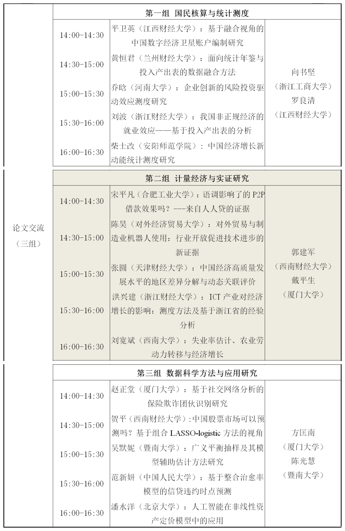 曾菊英教授、厦门大学戴平生教授和西南财经大学郭建军教授。该组交流的主题是“计量经济与实证研究”,五位被告人分别为合肥工业大学宋平凡、对外经济贸易大学陈昊、天津财经大学张圆、漫画柜