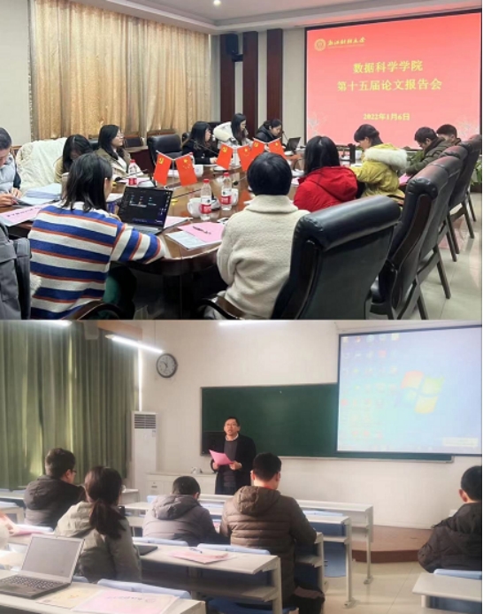 本届论文报告会分为统计学和应用数学两个专场。统计学专场报告由曾菊英教授主持,徐丽笑、项莹、项思佳、罗文雅4位教师介绍了他们的研究工作,分别就“高质量发展视域下创新要素空间配置效应的统计测度”“21世纪以来中国高技术产业全球价值链空间结构变迁”“Statistical learning based on modal regression”“Revised BDS test and its application”等问题,与参会教师进行了广泛的讨论和交流。应用数学专场报告由张永全教授主持,吴鹏、方诚、李群、王毅4位教师依次作了报告,分别就“Dynamical analysis and optimal control of a three-age-class HIV/AIDS epidemic model in China”“Quantile Control Method (QCM) with Stata”“An efficient nonmonotone adaptive cubic regularization method with line search for unconstrained optimization problem”“多智体群体合作行为机制的研究”等专题,与参会教师进行了深入的探讨和交流。