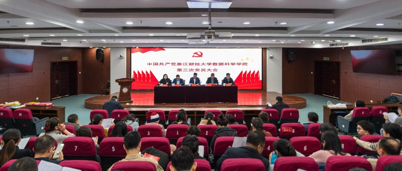 大会在庄严的国歌声中拉开序幕,学院院长、党委副书记洪兴建致开幕词。随后,校党委副书记程爽致辞,他充分肯定了过去五年中,数科学院党委在人才培养、学科建设、社会服务、和谐学院建设等方面取得的成绩。他指出,统计与大数据是数字时代学科融合发展创新的重要基础,要在“新财经战略”框架下更好发挥数科学院的专业优势。程爽对数科学院党组织建设提出四点要求:第一,坚持党的领导,始终把政治建设摆在首位;第二,全面深化改革,努力破解发展中的生存之道;第三,推进三风建设,激发学院发展内生动力;第四,发挥关键少数作用,着力加强领导班子建设。