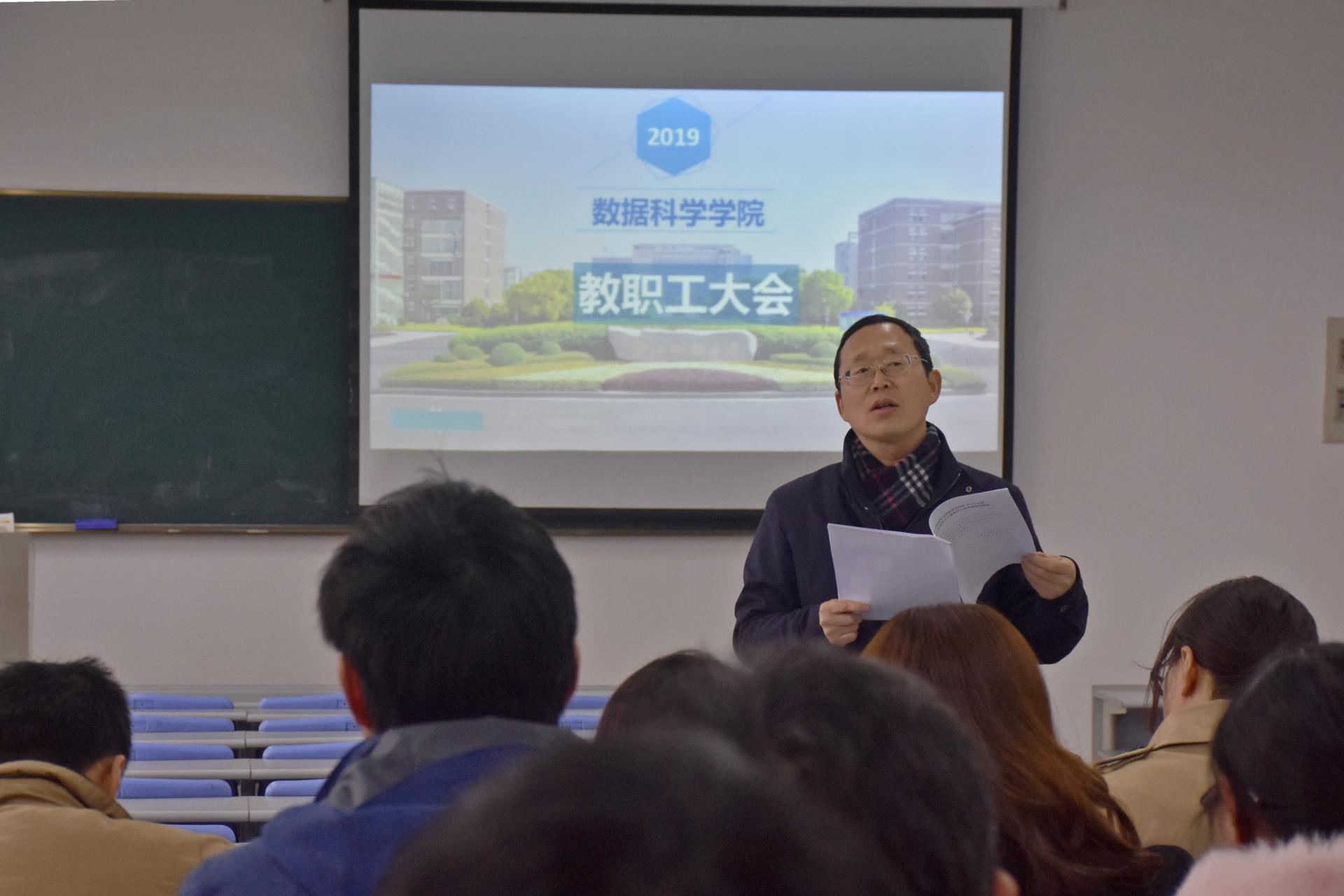 召开全体教职工大会,学习校党委书记李金昌在中层及以上干部会议上的重要讲话,学院党委书记周君兴主持此次大会,党委副书记刘向前、副院长罗季、周银香参加会议。