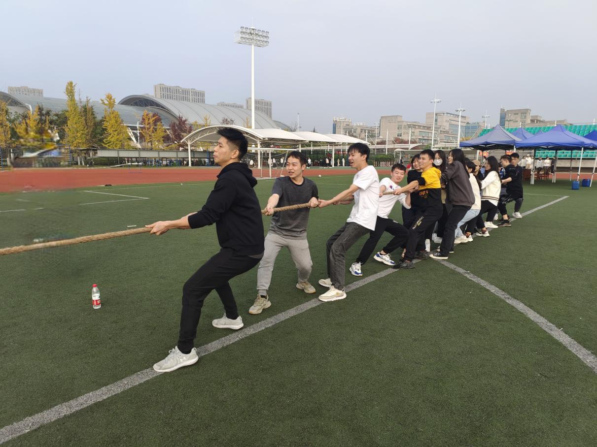 知识与体魄相融,趣味与竞技辉映。本次趣味运动会活动设置了毛毛虫赛跑、鼓击排球、红色知识竞赛、袋鼠接力、拔河等多个项目,党员们跃跃欲试、热情奔涌。在毛毛虫赛跑与袋鼠接力项目中,党员们团结合作,迸发出速度与激情;在鼓击排球项目中,党员们展现了高超的平衡技巧与协作默契;二十大知识竞赛更是紧张激烈,党员们斗志昂扬、踊跃作答,一声声干净利落的抢答展现了党员们丰富扎实的理论储备,引来喝彩连连;拔河比赛中,一根长绳串起了党员们凝心聚力的意志,反败为胜的精彩比赛将本次活动推至高潮。在欢呼声中,本次趣味运动会虽落下了帷幕,而青年党员们的青春活力与奋斗激情的余韵依然弥留在校园。