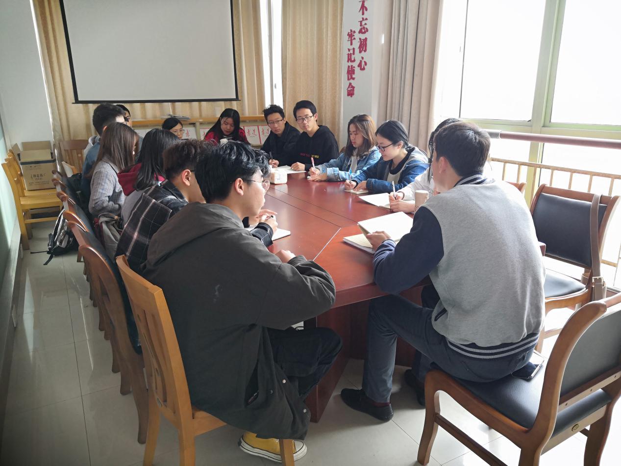 会上,学院团委书记李钊军带头学习2019年两会中文化教育方面的内容,并就相关要点和学习感想与同学们作了分享。随后,团支书们和学生党员们也展开了讨论,结合理论学习与实践经历分享观点与心得。