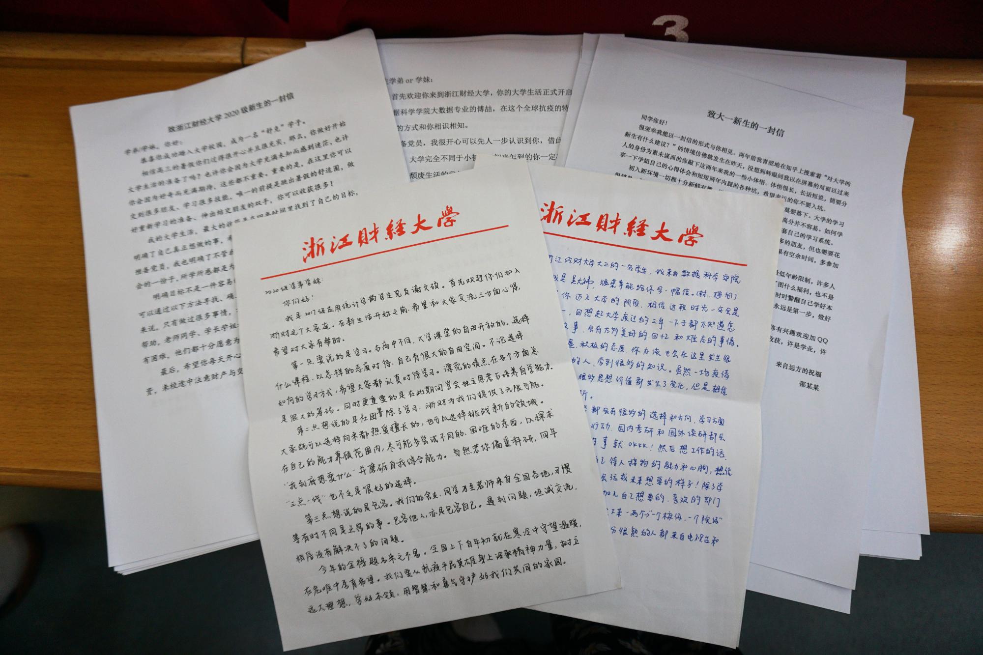 他们还带来了各自支部党员写给新生们的信。在信中,有的学生党员向新生们阐明了树立远大理想的重要性,有的为新生做好大学时期规划提出建议。不少学生党员响应学院党委号召,在信件中留下了自己的联系方式,与新生结对子。信件被随机放入录取通知书信封中,寄送给数科学院2020级新生。