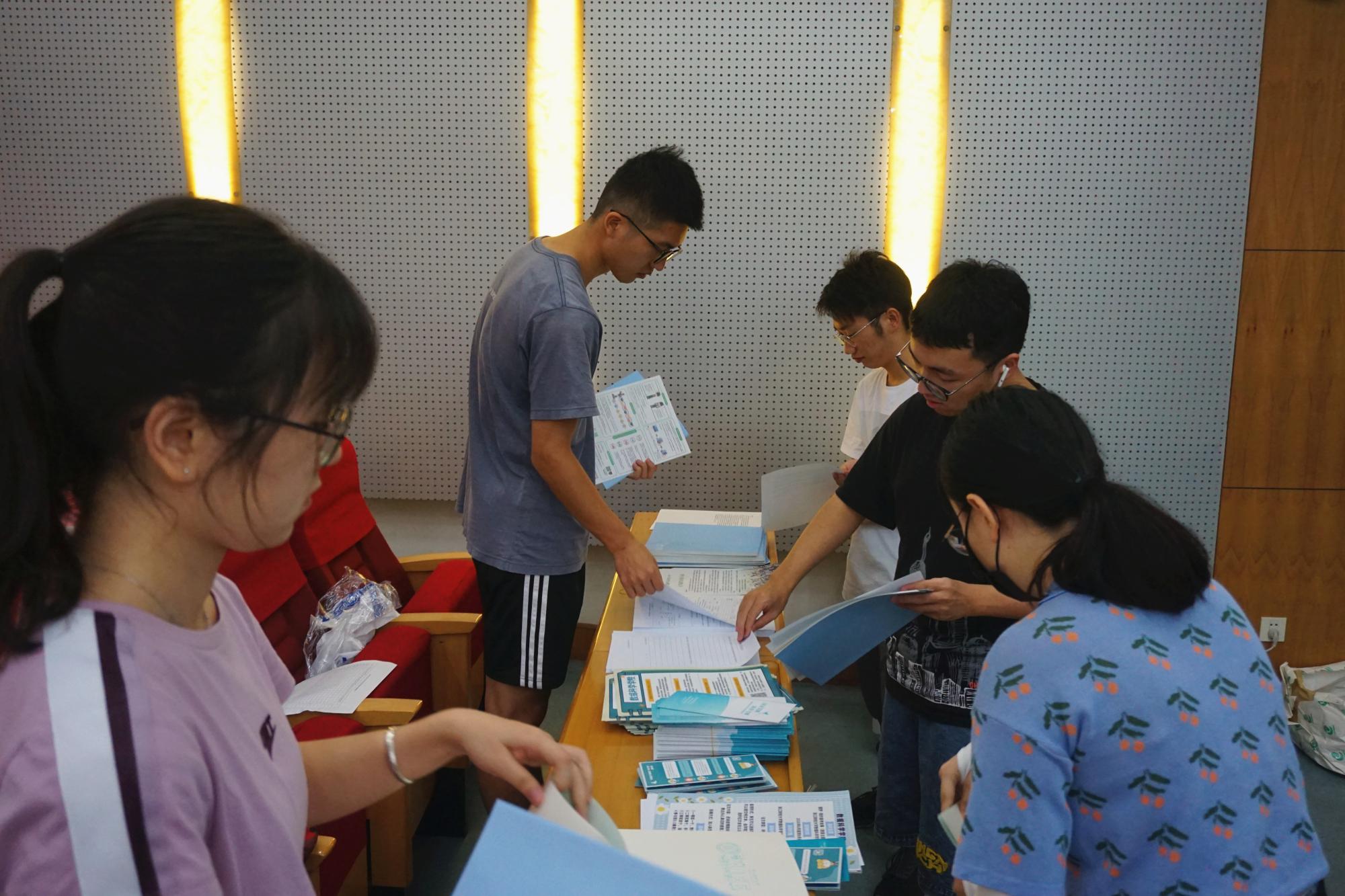 寄送录取通知书当天,数科学院各本科生党支部共6名代表来到录取通知书分装和寄送工作现场,他们合理分工,以认真严谨的态度,经过3个多小时的紧张工作,完成了182份录取通知书的分装任务。