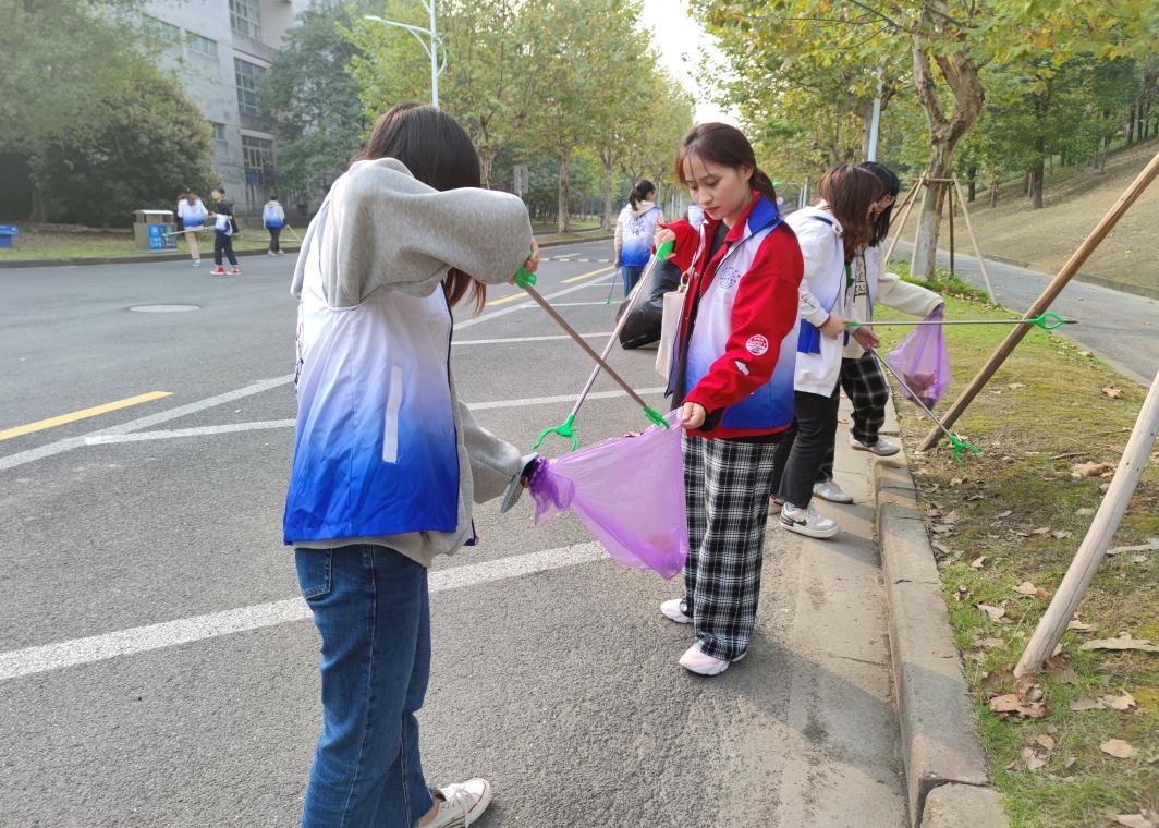 活动前,支部书记陈巍嘉、程秀红及支部委员确定各党小组清扫区域,分配清扫工具,布置清扫任务。活动中,各位党员和积极分子认真落实党组织安排的任务,及时清理马路上的落叶以及草坪中的白色垃圾,各小组同学团结合作,工作效率高。