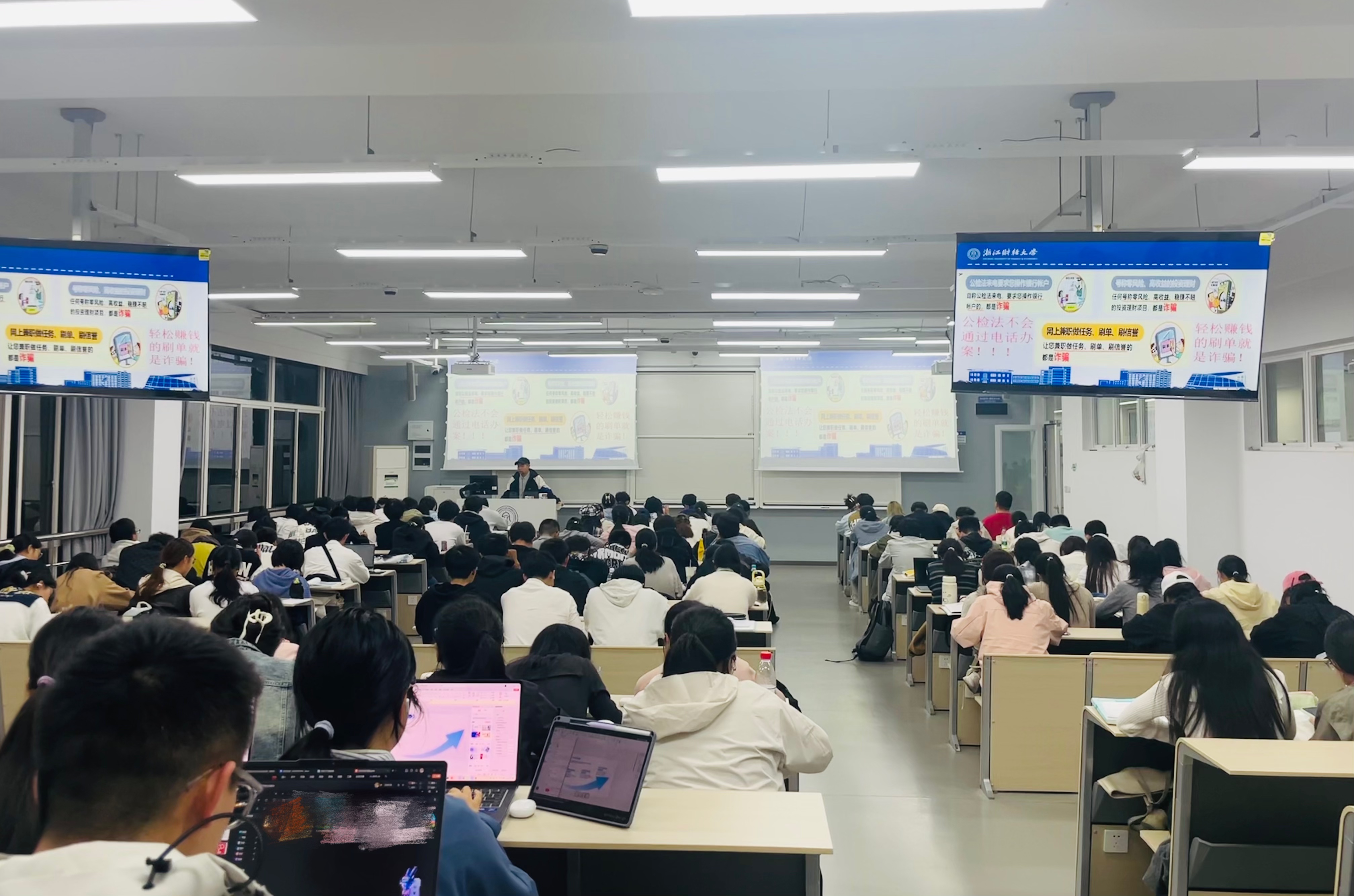 作为班导微课堂的重要组成部分,本期内容聚焦大学生群体高发的诈骗类型。主讲人通过剖析刷单返利、"校园贷"、冒充客服、虚假购物等多类诈骗手法,深入浅出地揭示其运作模式和核心陷阱。讲解过程中,不仅分析真实案例,更着重传授"不轻信、不转账、不透露"的防范要点,现场指导安装使用"国家反诈中心"APP,帮助新生掌握实用防骗技能。