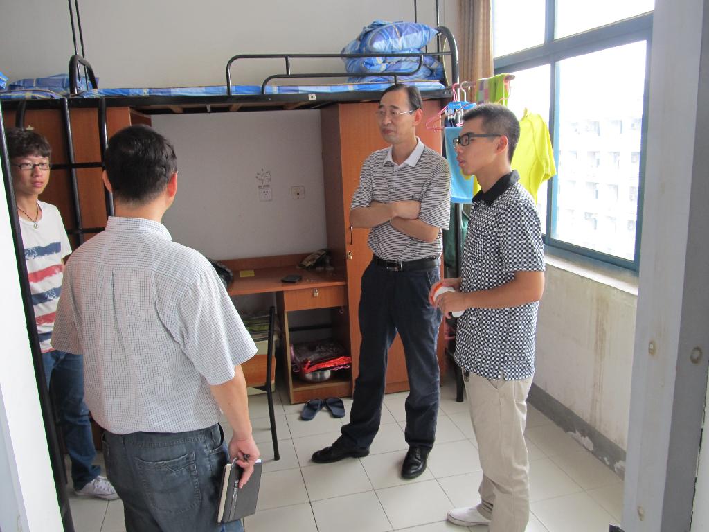 为了更好落实群众路线实践活动,9月22日上午,学院党总支书记杨辉煌、党总支副书记周君兴的在新生辅导员的陪同下,走访了2013级新生寝室。
