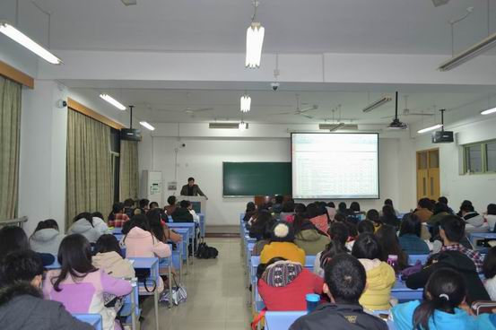 李时兴老师分别从“挑战杯”作品分类标准:自然科学类学术论文、哲学社会科学类社会调查报告和学术论文、科技发明制作等方面就“挑战杯”作品选题的可操作性、团队的组建以及作品内容的形式、规范等方面作了深入透彻的讲解,并结合自身指导“挑战杯”经历的实际经验,做了非常精彩的报告,赢得在场同学的阵阵掌声。接着,李老师又结合PPT向同学们展示参赛获奖作品,讲述了选题、设计方案的内容、统计分析方法、民生民意调查注意事项等方面的问题,为同学们在以后的科研比赛中提供了很大的帮助。在讲座尾声,李时兴老师鼓励同学们积极参加学校各类学术科技竞赛活动,不断提升自我的综合能力素质。