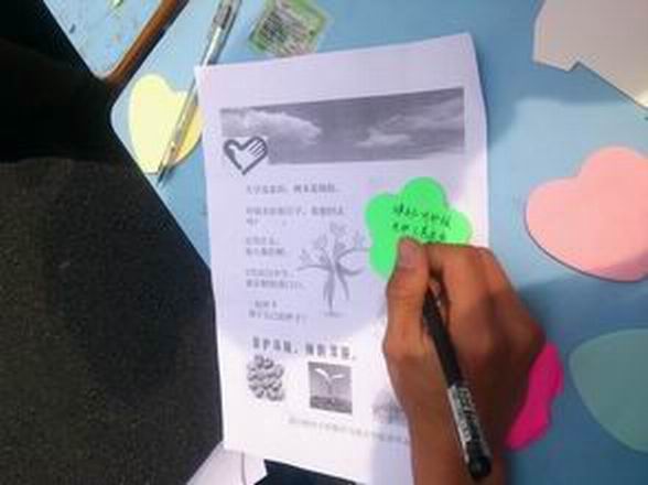 活动开始后,志愿者纷纷向前来的同学进行环保理念宣传,号召同学们用力所能及的实际行动参与到环境保护活动中来,并邀请同学们在便利贴上写下属于自己的绿色心愿。同时,每位参与活动的同学都收获了一份种子。“虽然当下的我们不能做出惊天动地的大事。但只要怀着一份信念,是种子早晚会开花结果,是梦想早晚能成就自我。”有一位同学坚定地说道。这又何尝不是众愿所向?