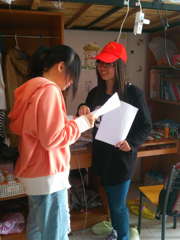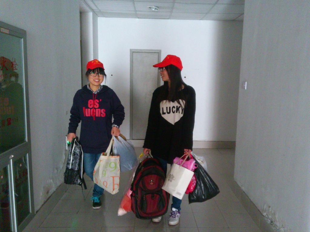 4月5日我们就开始了第一轮的宣传工作,我们先是通过飞信西门口宣传以及扫楼等方式,多了大力度的宣传,最后将近有百人参加报名了。接着就是具体的回收了,志愿者们在西门口集合后,由组长分工,大家分头负责不同宿舍楼,根据报名表上的信息,前往目的地。经过两个晚上的全方位回收,我们可谓是硕果累累啊,收到了各种衣服、包包、鞋子等等旧物。之后这些旧衣就由校青协联系的慈善组织将衣服运到青海玉树的希望小学中分发给那些贫困儿童。