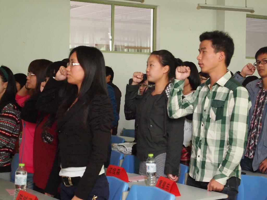 此次动员大会共分为六个环节。第一个环节是我们数统青志上届副站长吴雯雯学姐的发言。学姐为我们介绍了数统青年志愿者服务站以及青年志愿者的成长历程,让学弟学妹们对青年志愿者这个称呼有了更深刻的理解。接下来大家观看了一个关于数统青志的短片,短暂回顾了一下数统青志走过的第一个七年,也让大一新生们更好的了解了数统青志这个大家庭。第三个环节是校手语队的同学为我们带来的精彩的手语表演,他们熟练而又优雅的动作的令台下的观众都沉浸其中,让观众们都有点跃跃欲试了,给我们留下了深刻的印象。接下来便是第四环节,由大一新生代表丛红日同学上台演讲,他的演讲表达了大一的新生志愿者对志愿活动的向往和对做好志愿工作的决心,他的演讲可谓是代表了我们大一新生的心声啊!第五个环节是我们本届数统学院十佳歌手 Star Lee 李明星同学为我们带来的歌曲《我相信》,这首的演唱更是将现场气氛推向了高潮。最后大家跟随着主持人进行了志愿者宣誓,“我愿意成为一名光荣的志愿者……”在同学们激情的宣誓之后,本次大会也已经接近了尾声。