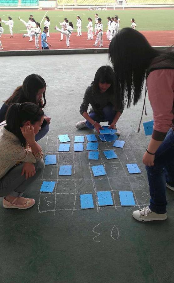 此次活动内容以趣味数学为主,由数字走方格,真人推箱子,袋鼠跳,狮子老虎过河四个趣味活动组成。活动过程中,参赛者被分为两队——男生队和女生队,活动规则为两队分别依次参加上述活动,完成所有活动且用时短的队伍则为优胜队。不管是需要活跃思维的数字走方格,还是灵活创新的真人推箱子,或是考验反应能力的袋鼠跳,亦或者是对逻辑思维要求甚高的狮子老虎过河。在队员们的齐心协力,互帮互助,积极思考下都被一一突破,这也展现了我们当代大学生积极进取的精神风貌 。