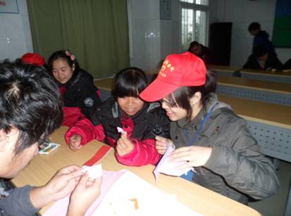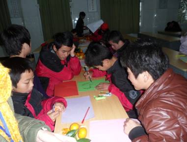 志愿者们早上9点正式出发,前往流量儿童中心。由于天气原因,本次慰问行动主要以室内活动为主,共分为四个环节。第一环节,志愿者们与小朋友加强互动,如下五子棋、象棋,打乒乓球等。第二环节,教唱感恩歌曲“爱因为在心中”。第三环节,小组比赛贴象鼻,在这一环节让小朋友认识团队的力量。第四环节,感恩大制作,志愿者们和小朋友一起做手工制作,送给他们最感激的人。在活动期间,漫画柜