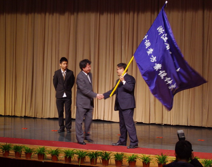副院长苏为华教授交接赛旗,明年,浙江省“民生民意杯”第二届大学生统计调查方案设计大赛将在漫画柜