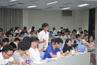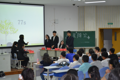 学术部举办的明星辩论赛在D202正式开始,辩论队队长及相关负责人和数科学院的全体新生参加了这场异彩纷呈的表演。参与这次辩论赛的辩手有正方的俞泉钱、王依、张巍、尚紫荆,反方的徐宁遥、韩润泽、邱张祺、吕道恒。