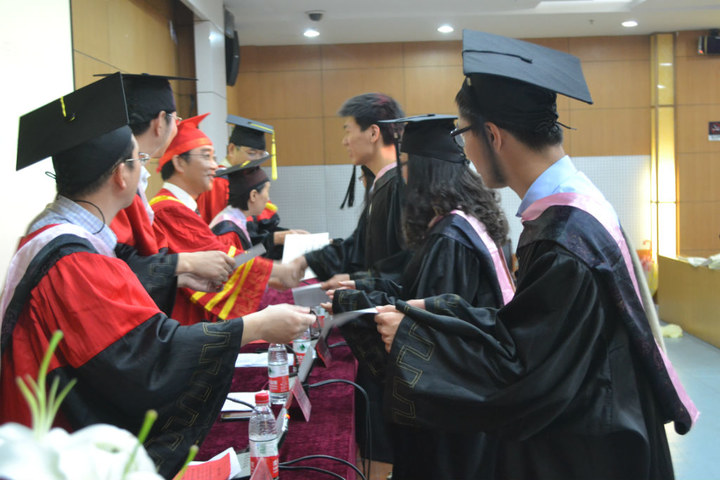 优秀毕业生名单以及毕业率和学位授予率。全体与会领导为毕业生依次颁发毕业证书,学士学位证书,优秀毕业生获奖证书!每位走上台的毕业生脸上都洋溢着激动、幸福的笑容,而台下的同学们则用手中的照相机或摄像机不停地拍着这最难忘的时刻,闪光灯此起彼伏,把毕业典礼的气氛推向高潮。