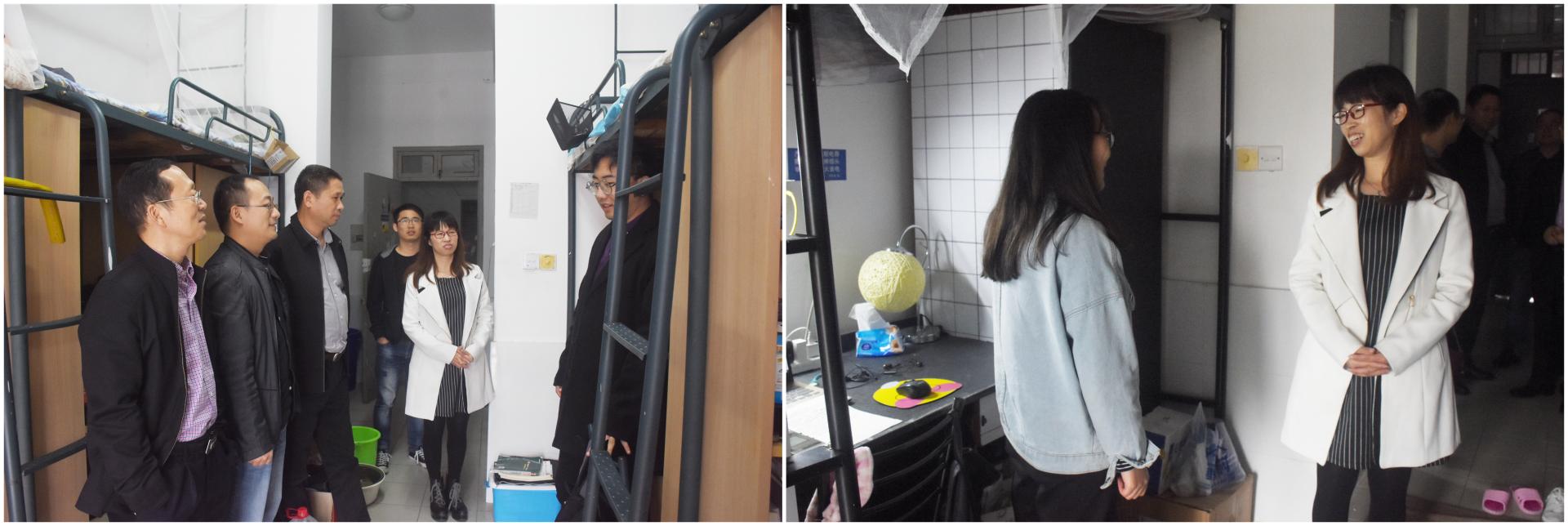本学期开学以来,学院领导开展了多次针对新生、考研学生、青年教工等群体的走访活动。本次走访的学生宿舍以贫困生所在宿舍为主,学院领导班子仔细询问了同学们的学习生活情况,还给他们送上了日用品和食品。得知有的同学正在创业,学院领导深入了解了他们的公司运营情况及发展前景,在称赞他们勇于尝试的同时,也叮嘱他们不要放松学习,要做到创业、学业两手抓。