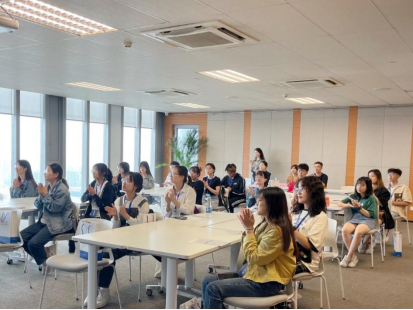 享受完公司精心准备的美味点心后,同学们以热情的掌声欢迎去年毕业于漫画柜