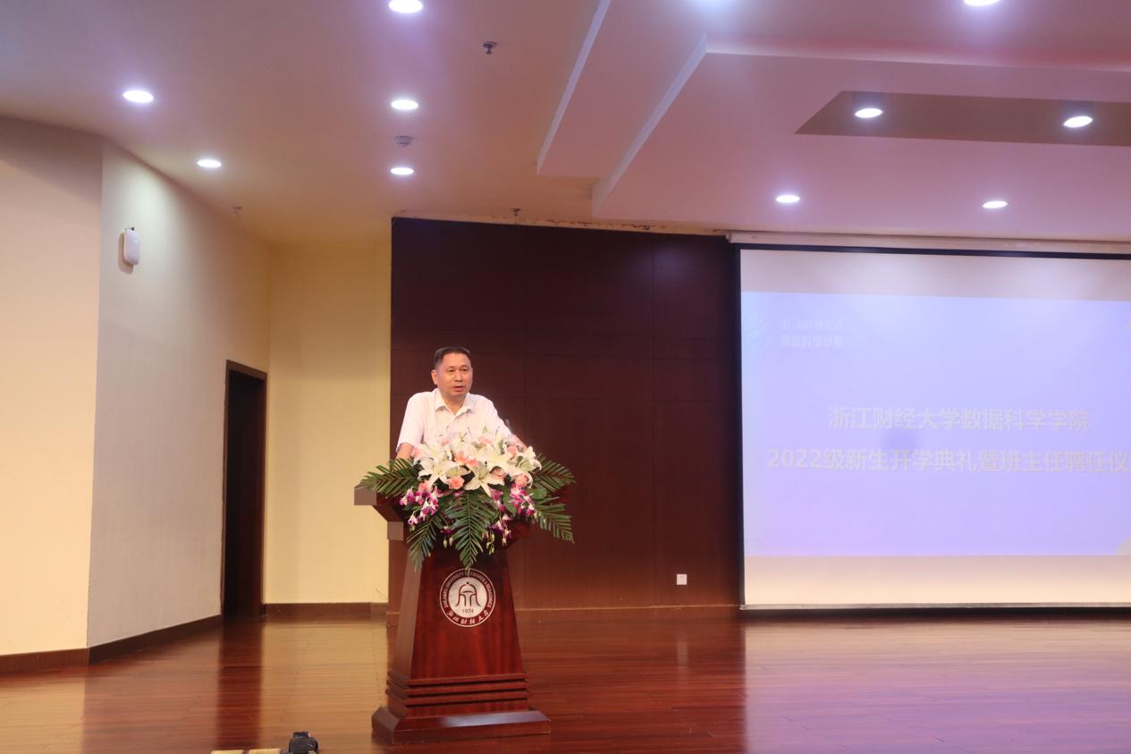 洪兴建结合自己过往的教学经历,围绕如何度过大学生活进行致辞发言,鼓励数科学子抵制诱惑,潜心向学,并对此提出了三点忠告。首先,他强调身为数科人,必须杜绝弄虚作假,“让数据说真话”的院训不仅是数科人的信仰更是风骨;其次,他指出数科人必须杜绝懈怠躺平,面对诱惑与困难时,应努力克服并奋勇向前;接着,他表示数科学子必须坚持实践创新,充分利用学院的实际创新平台,将所学与实际应用紧密结合,并在此次实践中不断提升自己实操能力和创新能力。最后,他祝愿和鼓励全体新生在数字经济高速发展、数字中国建设如火如荼的今天,掌握好专业知识,有朝一日利用最真实的数据去反映和解决社会问题,为数字中国的建设做出数科人的贡献。