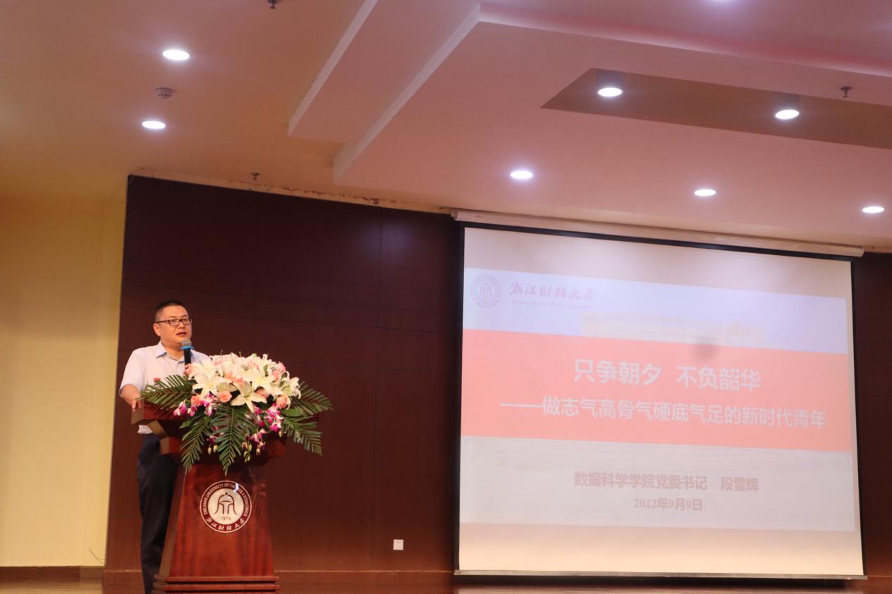 只争朝夕,不负韶华,做志气高、骨气硬、底气足的新时代青年。在思政第一课上,段雪辉分享了自己求学和育人经历,向2022级新生提出了殷切的希望。他指出在过去的几年里,学院有了长足的进步和发展,升学率也逐年递增,而未来的发展有赖于一批批数科人的努力,需要每一个数科人志存高远,脚踏实地。他希望2022级新生能在时代的浪潮中砥砺前行,明确自己的发展目标,向优秀的学长学姐看齐,并不断锤炼过硬本领,在细微小事中磨练自己,全面提升素质,争当新时代有理想、有本领、有担当的数科人。恰是数科风华年,愿与君共勉共进。
