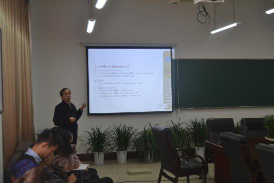 秀丽的校园环境及师生的良好素养给予了高度的评价。本次讲座中,薛教授就统计的方法论、单自变量模型、半参轴模型三个重点进行了讲解。薛教授严谨的数学推导和悉心的讲解,让在场的的师生们对这些方面的理论知识、学术前沿有了更深入的了解。
