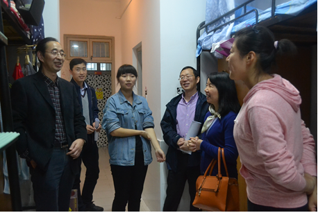 各位老师首先来到5幢女生寝室,详细询问大学新生学习和生活状况,并与寝室的贫困生亲切交流,针对同学们在学习中遇到的一些困难,老师们给出了专业的指导,让同学们明确了某些课程学习的方法和重点。同学们活泼开朗的性格,整洁明亮的寝室,积极向上的精神风貌,得到老师的一致称赞,寝室楼充满了欢声笑语,师生们沉浸在一片温馨祥和,其乐融融的氛围之中。
