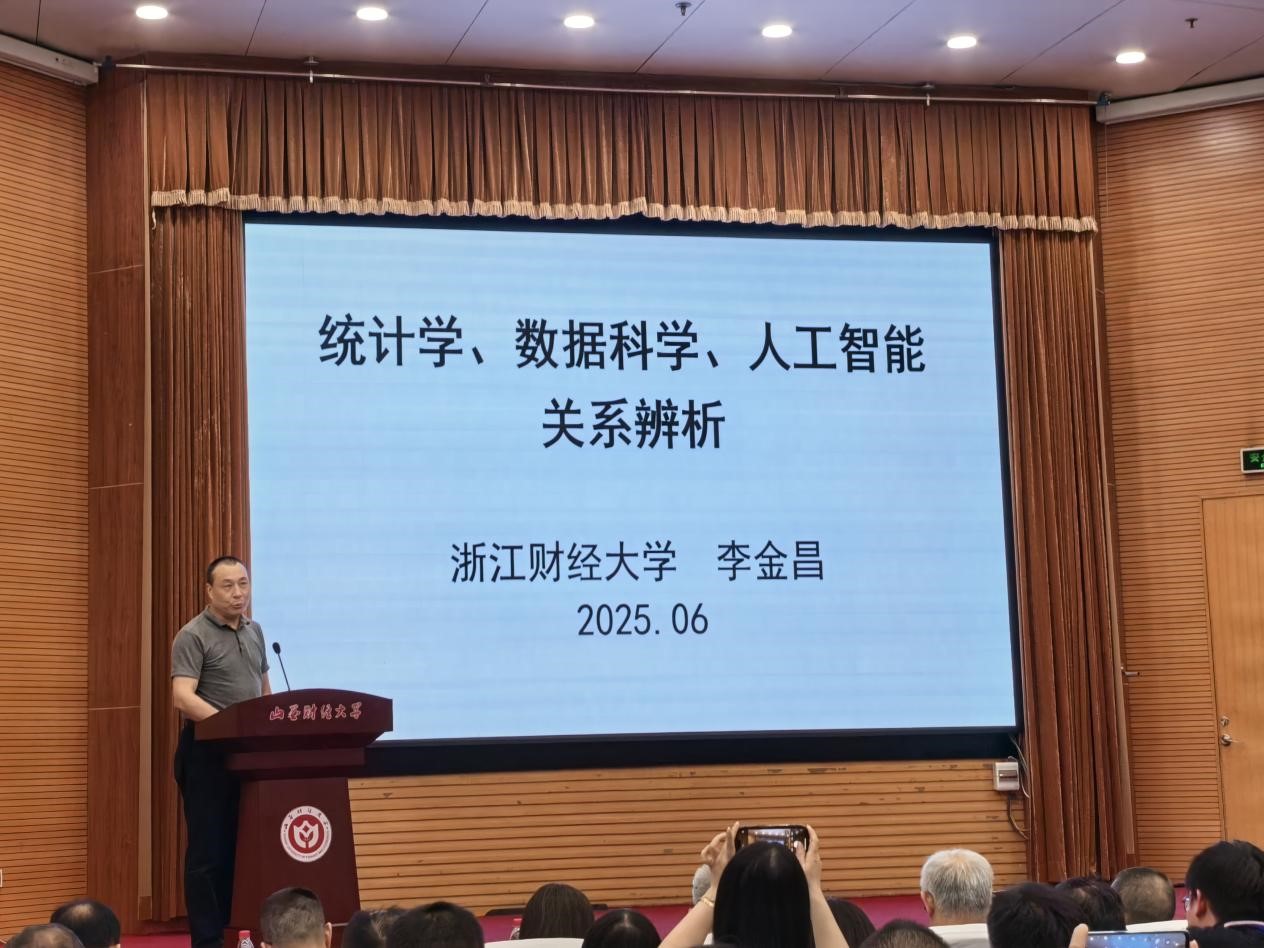 李金昌教授应邀作了题为《统计学、数据科学、人工智能关系辨析》的报告。李金昌教授在报告中对统计学、数据科学与人工智能的特征、构成等进行深入阐释,强调未来统计学作为“理论根基”、数据科学作为“实践框架”、人工智能作为“智能引擎”的融合发展趋势,并对大数据时代下的社会发展算法模型构建提出观点。