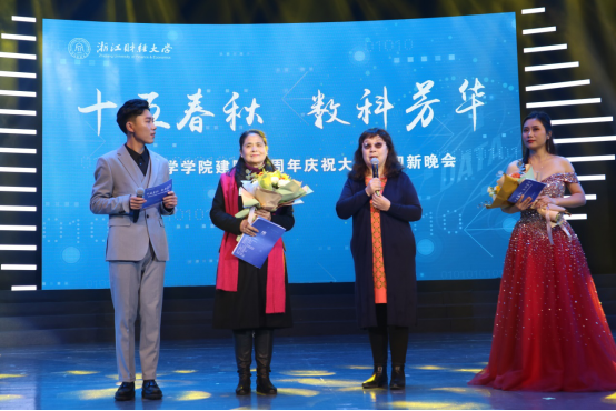 晚会上,师生献上了对唱《好大一棵树》,以优美的律动、轻柔的声调诉说着浓厚的师生情谊。在小品《烛芯》诉说退休教师最后一课的感人故事后,举行了隆重的教师荣休仪式。荣休教师热泪盈眶发表了感言,为新进教师佩戴校徽、新进教师为荣休教师献上鲜花,在新老互动中领悟传承着数科人教书育人代代传的奋斗精神。晚会还邀请了漫画柜