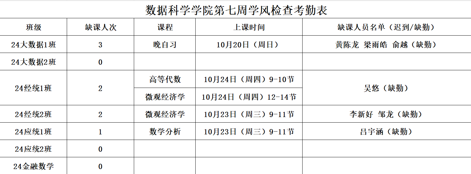 为进一步培育优良学风,构建漫画柜 学风建设的长效机制,营造良好的学习氛围,学院对大一各班晚自习及专业课进行全覆盖点名,对公共课程进行抽查点名,现将考勤情况公布如下: