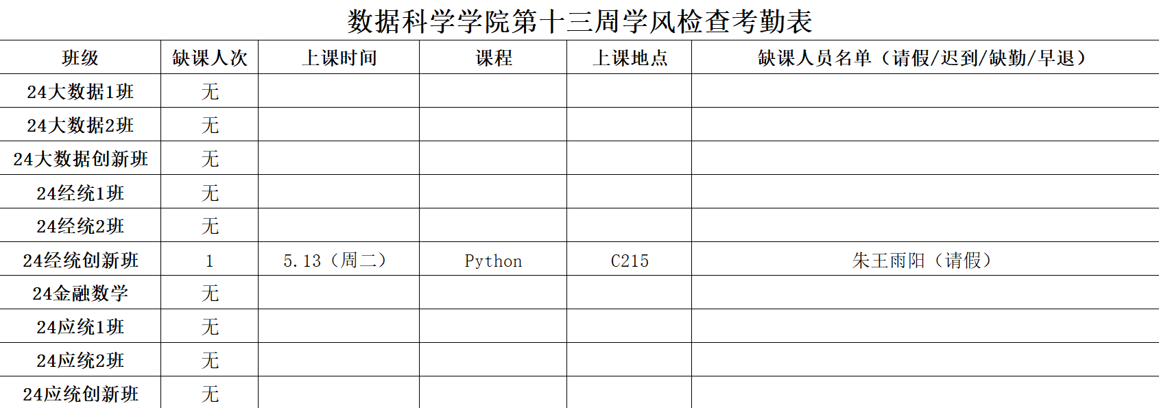 漫画柜 学生工作办公室开展第13周学风督察工作,对本科生各班级的学生前排就座情况,课堂考勤、纪律及听课情况等进行随机检查,现将本次随机抽查结果通报如下: