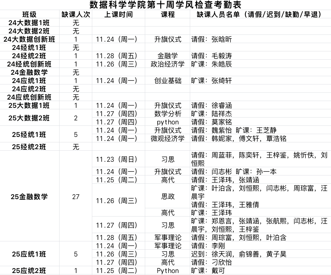 学院后续将常态化开展学风巡检抽查,希望同学们严守课堂行为规范,禁止“三无”行为,杜绝旷课、迟到、早退、代课等不良现象,共同营造“好学、勤学、乐学”的优良学气。