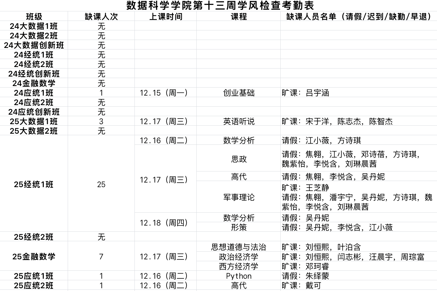 学院后续将常态化开展学风巡检抽查,希望同学们严守课堂行为规范,禁止“三无”行为,杜绝旷课、迟到、早退、代课等不良现象,共同营造“好学、勤学、乐学”的优良学气。
