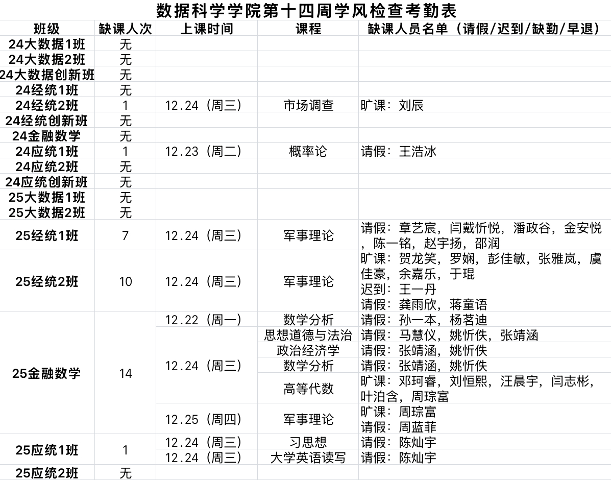 学院后续将常态化开展学风巡检抽查,希望同学们严守课堂行为规范,禁止“三无”行为,杜绝旷课、迟到、早退、代课等不良现象,共同营造“好学、勤学、乐学”的优良学气。