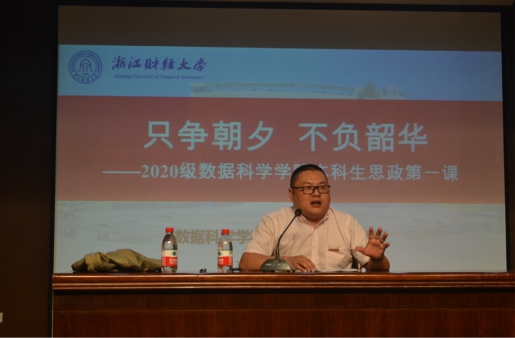 开学典礼后,学院党委书记段雪辉以《只争朝夕,不负韶华》为题给2020级本科上了一堂精彩的党建思政课。他指出,作为一名大学生,应学会立大德、明大志、做小事,始终要有家国情怀,在人生道路上怀揣梦想、脚踏实地。而后段书记通过自身年少求学的经历告诉我们“吃苦”精神的可贵,同时希望新生们能多参加学生会、社团等组织,从中弥补不足、全面发展自我。在一个多小时的讲课中,段书记用数据和鲜活的案例与同学们交流分享了大学学习成长的历程,同学们纷纷表示受益颇多,并下定决心要在财大塑造出一个全新的自我。