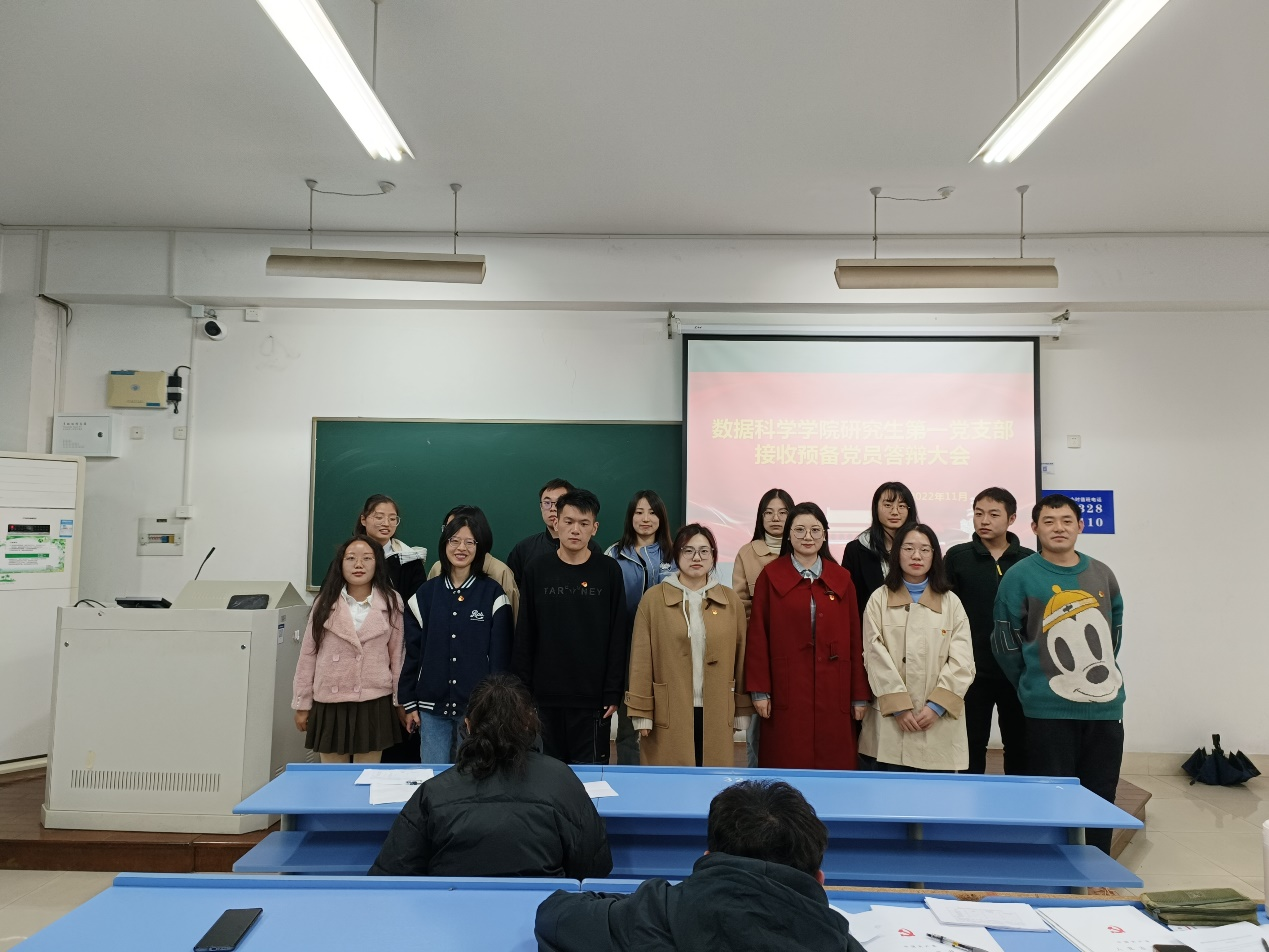 研究生第一党支部举办了接收预备党员大会和预备党员转正大会。本次支部大会由第一党支部书记杜星瑞和田婧茹主持召开。