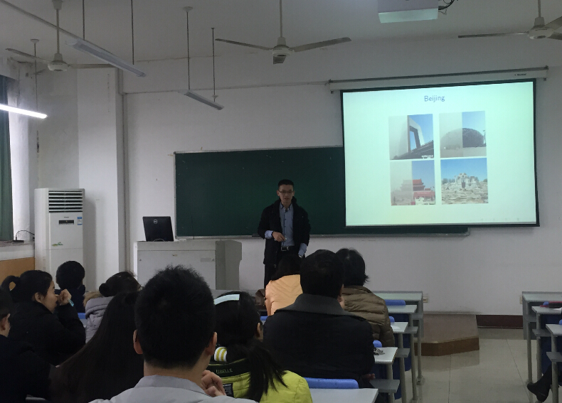 做了一场题为“From Shanghai to Beijing: From AQI to AQI”的学术讲座。讲座由数学与统计学院副院长,邱瑾教授主持。数学与统计学院部分老师及全体研究生参加了此次讲座。