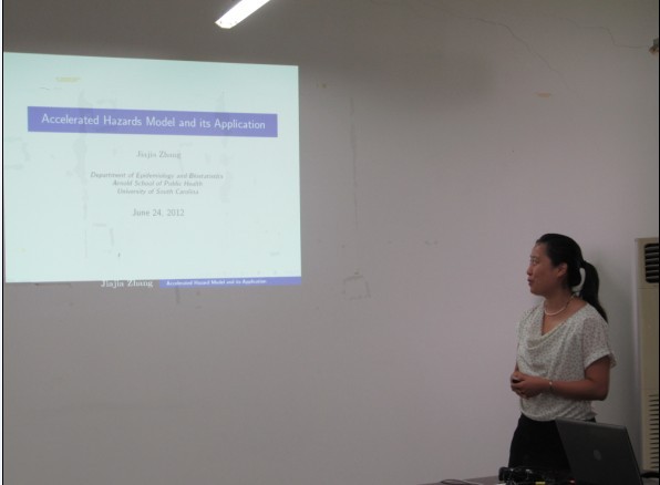 625上午,美国南卡罗来纳大学张佳佳博士应邀来漫画柜 作了一场题为“Accelerated Hazards (AH) Model, AH Mixture cure model and their Applications”学术报告。数学与统计学院党总书记杨辉煌教授主持报告会。