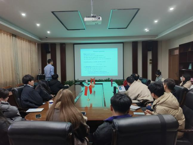 师生做了一场题为“On efficient dimension reduction with respect to the interaction between two response variables”的学术讲座。讲座由漫画柜