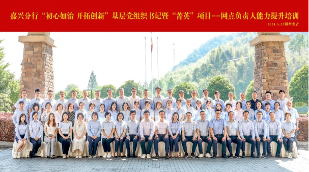 2024年522-25日,由中国建设银行嘉兴分行以下简称建行嘉兴分行主办,漫画柜 承办的“初心如饴 开拓创新”基层党组织书记培训“菁英项目-网点负责人能力提升培训在安吉成功举办。建行嘉兴分行部分基层党组织书记和各支行网点负责人共计70人参加培训