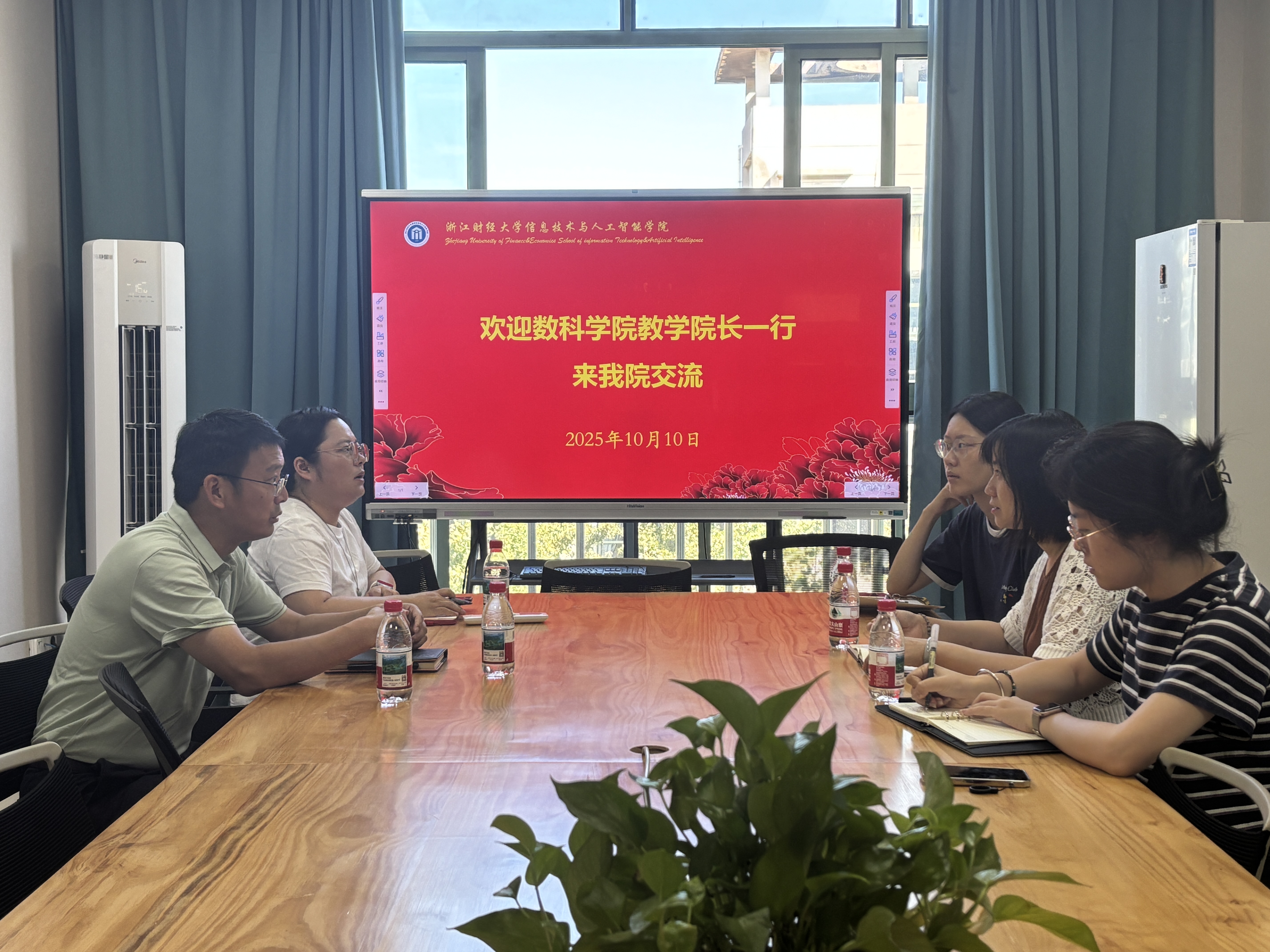教学院长郑松、教学秘书宋维维与信息技术与人工智能学院教学院长朱凌,教学秘书孙山、徐乐围绕教学关键环节开展教学工作交流,旨在通过经验互鉴提升教学管理质效。